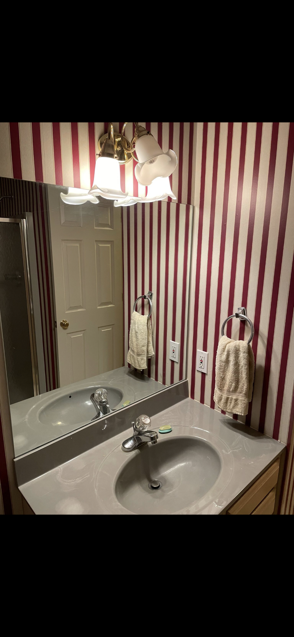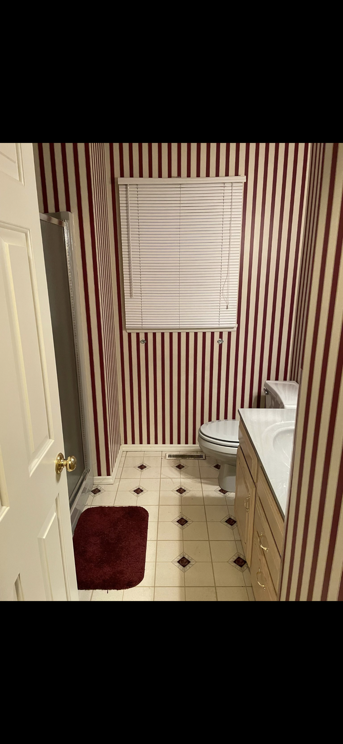 Located in Bloomington, Indiana, this project reimagines what was once a true IU-inspired bathroom—complete with red and white candy-striped wallpaper—into a refined industrial retreat.